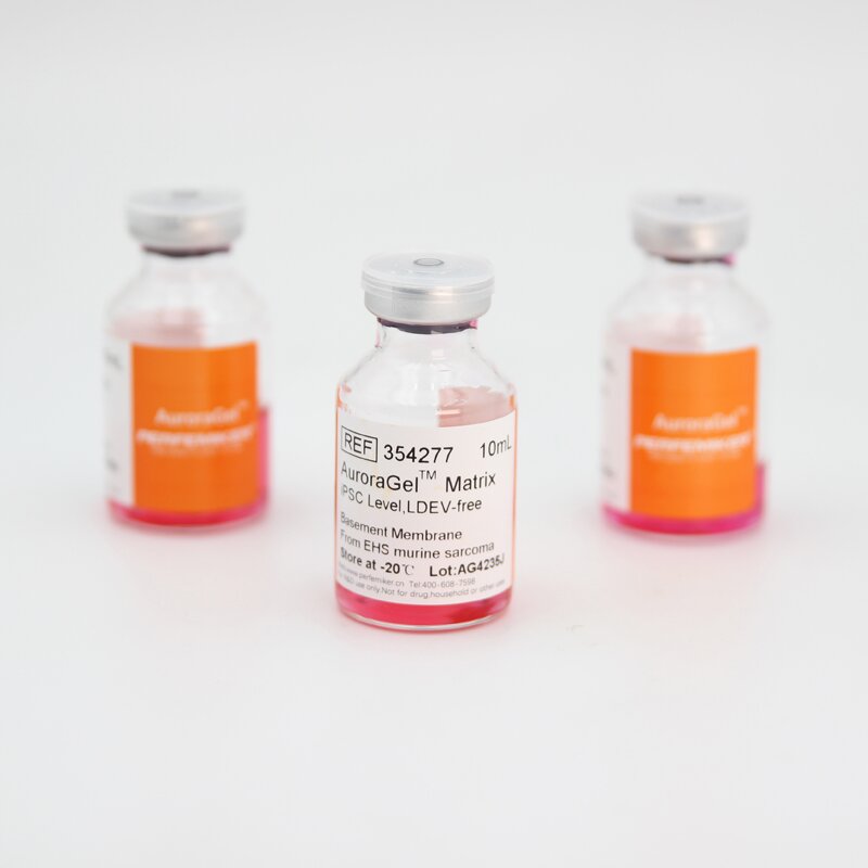 PERFEMIKER? AuroraGelTM Matrix iPSC Level是從富含胞外基質(zhì)蛋白的小鼠腫瘤中提取出的天然基底膜基質(zhì)。主要依次為層粘連蛋白(Laminin)、IV型膠原蛋白(Col-IV)、巢蛋白(Entactin)、硫酸乙酰肝素蛋白多糖(Heparan sulphate proteoglycans)及多種細胞因子,如類胰島素生長因子(IGF-1)、轉(zhuǎn)化生長因子β(TGF-β)、血管內(nèi)皮生長因子(VEGF)、表皮生長因子(EGF)、成纖維細胞生長因子(bFGF)等。產(chǎn)品溶解于高糖含酚紅DMEM中,且非定制產(chǎn)品均添加了50μg/mL慶大霉素。推薦與特定培養(yǎng)基結(jié)合使用,進行干細胞的相關(guān)研究,如hESC,iPSC等的擴增和分化,也可用于體內(nèi)分化研究,例如畸胎瘤的形成。