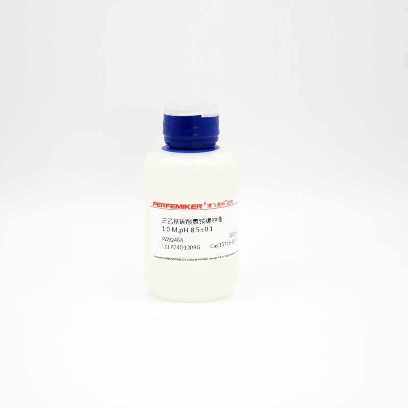 博飛美科的三乙基碳酸氫銨緩沖液,1.0 M, pH 8.5±0.1為生物緩沖液,產(chǎn)品穩(wěn)定,定制速度快,極大地方便了廣大科研客戶的使用需求。產(chǎn)品包裝為100ml。查詢關(guān)鍵詞:生物緩沖液,15715-58-9,三乙基碳酸氫銨緩沖液,1.0 M, pH 8.5±0.1,Triethylammonium bicarbonate buffer,博飛美科,Perfemiker,上海,廠家直銷。